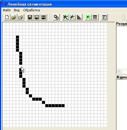 где (x,y) – координаты рассматриваемой точки; M и N – ширина и высота изображения; C – массив сегментов, размерность MxN; n – номер обрабатываемого сегмента. На рис. 3.1. выделенные точки принадлежат сегменту, представляющему собой тип сегментов, являющихся отдельными самостоятельными линиями. Отдельные сегменты линий