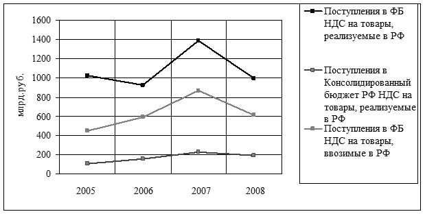 Сегодня НДС в России является не только основным косвенным налогом, но и играет ведущую роль в формировании доходной части бюджетов всех уровней. Поступления указанного налога консолидированный бюджет Российской Федерации, составили за 2008 г. около 13% (986,8 млрд. руб.) всех поступлений налогов, сборов и иных платежей.