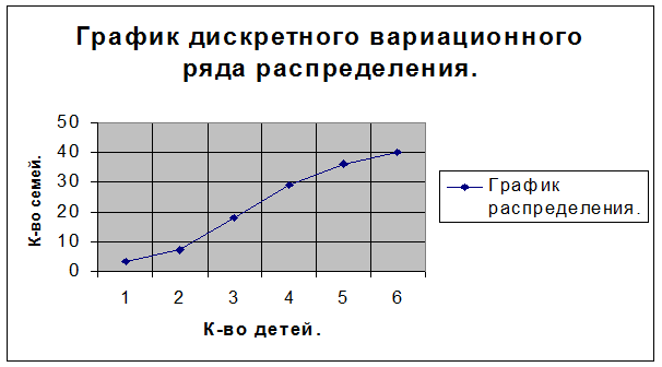 Рi – средняя цена I-го товара. 2. Задание №2. Имеются следующие данные о числе детей в 40-ка семьях: 4, 3, 4, 3, 5, 1, 3, 4, 3, 4, 5, 6, 3, 3, 3, 4, 1, 6, 2, 2, 5, 4, 4, 5, 3, 3, 4, 4, 3, 1, 4, 3, 5, 4, 2, 6, 6, 5, 5, 2. Постройте дискретный вариационный ряд распределения. Изобразите его графически. Укажите элементы ряда распределения. Сделайте выводы. Ответ.