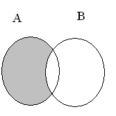 рисунок 6. Операция, при помощи которой находят объединение множеств, называется также объединением. Операции пересечения и объединения множеств подчиняются ряду законов. В частности они коммутативны, т.е. А Ç В = В Ç А и А È В = В È А для любых множеств А и В. Ассоциативны, т.е. (А Ç В) Ç С = А Ç (В Ç С) и (А È В) È С = А È (В È С) для любых множеств А, В и С. Разностью множеств А и В называется множество, содержащее те и только те элементы, которые принадлежат множеству А и не принадлежат множеству В. Разность любых двух множеств А и В всегда существует и единственна. Разность множеств А и В обозначают А\В. Если представить множество А и В при помощи кругов Эйлера, то разность данных множеств изобразиться закрашенной областью. (рис. 7).