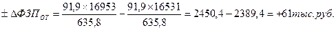Совокупное влияние: +61+602,6-534=129,6 тыс.руб. II способ: ± Δ ФЗП = ФЗП1 – ФЗП0 = 2519 – 2390 = + 129