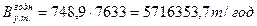 ПСгодн = (607Ч7633 - 4219) /7633=606,1 т/ч,