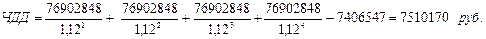Чистый дисконтированный доход (ЧДД) - это сумма текущих дисконтированных доходов за весь расчетный период Т = 4 года, с учетом нормы дохода