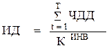 Индекс доходности инвестиций представляет собой отношение суммы приведенных доходов ЧДД к приведенным инвестиционным расходам (К Инв ).