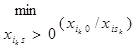 рядках цього стовпця записують компоненти вектора у базисі . Вони отримуються у результаті множення матриці , записаної у таблиці (1.2) на вектор компоненти якого вказані у таблиці (1.2). Після знаходження чисел виясняють, є серед них додатні чи ні. Якщо таких чисел має, то задача не має розв‘язку. Якщо є додатні числа переходять до нового опорного плану задачі. Для цього знаходять .