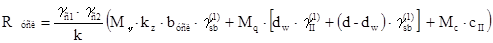 Принимаем: gc1 = 1,2 gc2 = 1; k = 1; jII 4 = 18°; cII 4 = 44 кПа Mg = 0,43; Mq = 2,73; Mc = 5,31; gIImt = 9,25 кН/м3