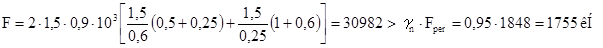 PIImax = 252 кПа < 1,2×R = 1,2×731,5 = 877,8 кПа PIImin = 36 кПа > 0