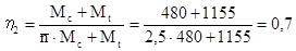 Здесь расчетный удельный вес грунта с учетом взвешивания воды (для слоя 2) gI = gsb = 8,21 кН/м3; φI = 60; cI= 19 кПа; коэффициент x = 0,6 (для забивных свай); коэффициент η1 = 0,7. При установлении значения коэффициента η2 по формуле (26) прил.1 к СНиП 2.02.03-85, используем данные табл.5, из которой следует, что момент от внешних постоянных нагрузок в сечении на уровне нижних концов свай составит для оси А: Мс = 319 + 19 × 8,45 = 480 кНм Момент от временных нагрузок в том же сечении составит: Мt = 0 + 503,8 + 60,5 + (0 + 66,2 +3,7) × 8,45 = 1155 кНм