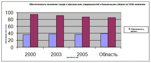 Заключение 1.За счет не благоприятной экологической обстановки в городе Н отмечается рост лиц, страдающих хроническими заболеваниями, учащение обострений хронических заболеваний, более тяжелое течение острых заболеваний. В сочетании с плохой социально-экономической обстановкой из-за которой не возможно адекватное лечение и низкой медицинской осведомленностью населения, обращаемость к врачу в профилактических целях снижается, а при обращении с лечебно-диагностическими чаще впервые обращаются уже в запущенных стадиях. 2.Увеличение смертности населения в городе Н за последние годы обусловлено плохой организацией службы скорой помощи, процесс госпитализации, отсутствием преемственности между врачами (частая утеря амбулаторных карт, неправильное заполнение медицинских документов) 3.Наблюдаются случаи оказания не качественной медицинской помощи, а порой и нанесения вреда здоровью горожан за счет не правильно поставленных диагнозов (низкая квалификация врачей, низкая трудоспособность, изношенность медицинской аппаратуры, отсутствие современной аппаратуры, плохая работа регистратуры) за счет большого коэффициента совместительства среди врачей, низкого стимула для повышения квалификации, загруженностью врачей связи с увеличением обращаемости в сочетании с не полной укомплектованностью. 4.Увеличение детской смертности в городе Н за счет отсутствия достаточного количества врачей-неонатологов, аппаратуры, плохой социально-экономической и экологической обстановки. Кроме того, рост заболеваемости среди женщин фертильного возраста в сочетании с высокой поздней обращаемостью в женскую консультацию, не регулярными и порой не качественными обследованиями, отсутствием в городе Н многих специалистов, отсутствие индивидуальных планов ведения беременных пациенток, что так же влияет на здоровье плода и в последующем ребенка, младенческую смертность. 3 эту часть работы студент выполняет по своей инициативной теме |
