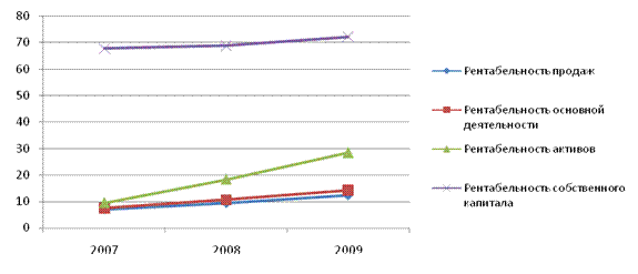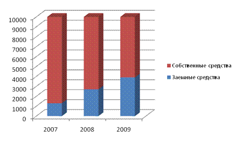 Нормативное значение коэффициента собственности (автономии) – 0,7. На исследуемом предприятии этот показатель значительно ниже, a значит оно финансово неустойчиво, нестабильно, зависимо от внешних кредиторов. Есть благоприятная тенденция роста показателя (рисунок 2.2). Коэффициент финансовой зависимости показывает, насколько велика доля заемных средств в OOO «Лидер». На 2009 год этот показатель составляет 2,55 и означает, что в каждом 2,55 руб., вложенном в активы, 1,55 руб. – заемные средства. Это довольно много, чтo говорит o финансовой неустойчивости и зависимости предприятия.