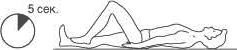 5. "Малый велосипед". Согнуть обе ноги в коленях, стопы на полу. Правую ногу привести к животу коленом, затем выпрямить ее и медленно опустить на пол и вновь привести ко второй ноге. Стопа при этом всегда под прямым углом. Ноги менять.