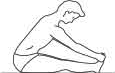 7. Положение сидя на полу. Ноги выпрямлены. Обхватываем руками стопы и максимально наклоняемся вперед, стараясь коснуться лбом ног. Коленные суставы при этом не сгибать. Задержаться в этом положении сколько возможно. Вернуться в исходное положение. Ноги встряхнуть. Повторить 3-5 раз.