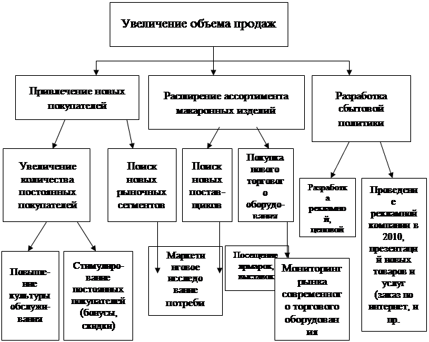 Рисунок 2.1 – Дерево целей ОАО «Новосибирская макаронная фабрика»Производство продукции является основным содержанием работы ОАО. В масштабе ОАО, в каждом из основных цехов организуется управление этим процессом. Содержательной и наиболее ответственной работой по управлению производством является планирование производства изделий, т.е. формирование цехам, участкам производственных программ и обеспечение необходимых условий для их выполнения. Эта работа в соответствии с установленными в каждом ОАО плановыми периодами, регулярно повторяясь, выполняется функциональными службами и линейными руководителями производственных подразделений. Организационная структура ОАО «Новосибирская макаронная фабрика» представлена на рисунке 2.2.