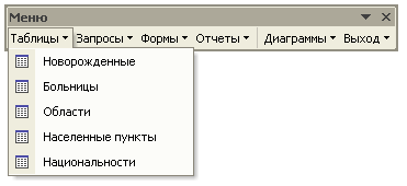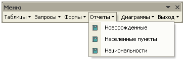 Обращение к приложению Для обращения к приложению базы создано меню: