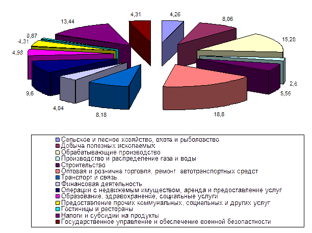 ![]() Рисунок 1 - Динамика производства ВВП (в процентах к условному кварталу 2004г.) Приложение Б (справочное) Структура ВВП России в 2009 году по видам экономической деятельности, в рыночных ценах, проценты