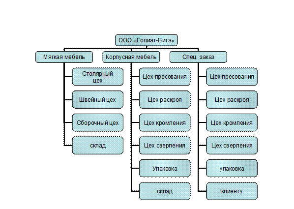 По своему виду предприятие является обществом с ограниченной ответственностью и относится к разряду малых предприятий в соответствии с нормативными документами, указанными в настоящем Уставе и зарегистрировано в Государственной Регистрационной палате при Министерстве Юстиции РМ №137018221 под фирменным названием «Goliat-Vita» SRL При создании изучаемого предприятия учредители руководствовались постановлением Правительства РМ от 10 сентября 1991 года №500 «Об утверждении положения о хозяйственных обществах в РМ» и законом РМ от 3 января 1992 года №855-XII«О предпринимательстве и предприятиях».[3] Юридический адрес предприятия: Республика Молдова, АТО Гагаузия, г. Комрат, ул. Ленина, 11/а. Электронный адрес: e-mail: goliat-vita@mail.ru Веб-страница: www.goliat-vita.com.md Фирма была зарегистрирована в 1997 году и начала свою деятельность с продаж мебели, произведенной на предприятиях г. Кишинева и Тирасполя. В 1988 году было куплено первое оборудование – пресс для ламинирования ДСП, 2 кромочных и 1 сверильный станок. В 2002 году компания впервые привлекла заемный капитал в виде банковского кредита. До этого момента использовались личные сбережения и денежные средства родственников или друзей.Директор предприятияАнастасов С.И. утверждает: «Успех нашего предприятия кроется в быстроте реакции на изменения во вкусах и предпочтениях потребителя. Изучение спроса, анализ опыта деятельности аналогичных предприятий других стран - это залог успеха любой компании» . Предприятие имеет самостоятельный баланс и счета в банках, печать со своим наименованием и эмблемой, соответствующие штампы, собственные бланки, другие реквизиты юридического лица. Как юридическое лицо предприятие осуществляет оперативный и бухгалтерский учет результатов работы, едет статистическую отчетность в соответствии с законодательством РМ. Ответственность за соблюдение порядка и достоверности учета и отчетности несут генеральный директор и главный бухгалтер. Прибыль, оставшаяся у предприятия после уплаты налогов и других платежей в бюджет, поступает в полное расположение предприятия. Образуются следующие фонды, источником которых является чистая прибыль: - резервный (страховой фонд); - фонд социального развития. Ежегодно в резервный фонд осуществляются отчисления в размере 15% полученной за год прибыли. Размер ежегодных отчислений, согласно Уставу, должен составлять не менее 5% суммы чистой прибыли. Порядок использования фондов определяется общим собранием Учредителей, а его разрешения дирекцией предприятия Организационная структура аппарата управления SRL«Goliat-Vita» относится к линейной структуре управления. На этой основе создается иерархия руководителей данной системы управления. Отдельные специалисты или функциональные отделы помогают линейному руководителю в сборе и обработке информации, в анализе хозяйственной деятельности, подготовке управленческих решений, контроле над их выполнением. Организационная структура управления SRL «Goliat-Vita» представлена в приложении 1. Цель предприятия состоит в удовлетворении общественных потребностей, в продукции, работах и услугах от производственной деятельности предприятия и реализации на основе полученной прибыли социальных и экономических интересов Учредителей. Для реализации поставленных целей SRL «Goliat-Vita» занимается следующими видами деят