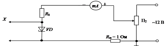 Рис.13. Определение параметров диода по вольтамперной характеристике 2. Снятие вольтамперной характеристики выпрямительных диодов при помощи осциллографа Собрать схему, приведенную на рис.14.