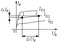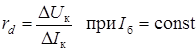 где В – коэффициент передачи тока базы, причем, различают статический коэффициент передачи и дифференциальный; на линейных участках характеристик статический и дифференциальный коэффициенты одинаковы; Iк0 ’ – обратный ток коллектора в схеме с общим эмиттером; rd – дифференциальное сопротивление коллекторного перехода для схемы с общим эмиттером.