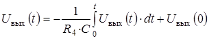 . Тогда где R4 С = τ – постоянная времени интегрирования. Работа интегрирующего усилителя для скачка входного напряжения приведена на рис.2.