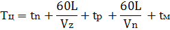 L =4 км – дальность транспортирования, Vz = 15 км/час – скорость автосамосвала в загруженном состоянии при движении по грунтовому накатанному покрытию Vn = 25 км/час – средняя скорость автосамосвала в порожнем состоянии tp = 0,83 мин – время разгрузки, tм =0,90 мин – время маневрирования перед погрузкой и разгрузкой.