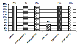 В приложении 2 приведена анкета Белбина, по которой проводился опрос среди работников предприятия. Проведенное анкетирование (Приложение 3) позволило сделать следующие выводы: среди исследуемого персонала выделились следующие роли (рис.1).