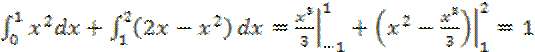 Рисунок 2. Фигура, ограниченная параболами у = х2 , у = 2х — х2 и осью Ох Из рисунка видно, что фигура состоит из двух криволинейных трапеций. Следовательно, искомая площадь равна сумме площадей этих трапеций S = Задача 2. Найти площадь S фигуры, ограниченной отрезком