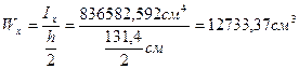 1,64 см < 3,57 см Условие жесткости выполняется. 4.6 Изменение сечения ГБ по длине: Цель изменения сечения ГБ по длине – получить некоторую экономию металла. В однопролетной шарнирно-опертых балках с равномерно-распределенной нагрузкой по всей длине оптимальным является изменение сечения на 1/6 пролета l от пролета. 4.6.1 Момент и поперечная сила на расстоянии 1/6 l от опор: Мизм = 0,56 * М max = 0,56 * 30929062,5 кг*м = 17320275 кг*м; Q изм = 0,66 * Qmax = 0,66 * 82477,5 кг = 54435,15 кг. 4.6.2. Требуемый момент сопротивления измененного сечения: