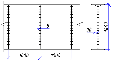 Рис. 4.7. Схема расположения ребер жесткости 4.10. Расчет поясных сварных швов , крепящих полку ГБ к стенке: Поясные швы – непрерывные с постоянным по длине балки катетом шва kf :