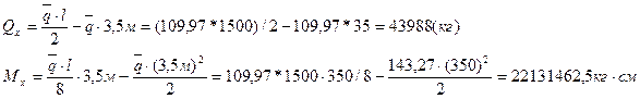 Условие: (0,8 Mmax – 0,85 Mmax ) не удовлетворяется, поэтому назначаем новое значение x = 4,5 м
