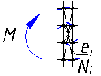 Рис. 4.10. Распределение внутренних усилий в накладках по стенке под действием внешней нагрузки где е – расстояние от болтов до центра болтового поля; N – возникающие усилия. NQ = Qx / n б = 32991 / 24 = 1374,625 кг; Nmax = Мст * emax / Σ ei 2 = 2504870,496 * 55,187 / 4(3045,6 + 2043,04 + 1260,25 + 655,36 + 246,49 + 39, 06) = 4740, 74 кг.