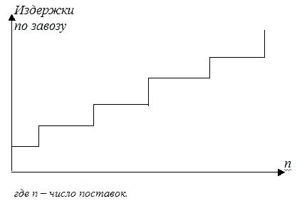 Краеугольным камнем системы управления товарными запасами является соотношение между затратами на хранение таковых и потерями от снижения товарооборота в случае дефицита отдельных товарных позиций. Вследствие этого необходимо производить группировку всего товарного ассортимента по удельному весу в товарообороте, и, как следствие, частота контроля по этим группам будет различной. В зависимости от условий поставок, удаленности оптовых баз и иных факторов необходимо производить сравнительный анализ между числом поставок и объемом партии товара. Показательным, в частности, является следующий график. Зависимость издержек по завозу от числа поставок.