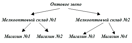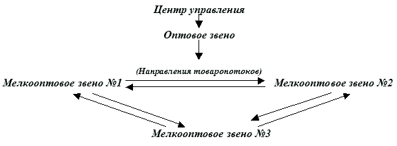 Сети товародвижения, располагающие оптовыми промежуточными базами, являются более прогрессивными. На мелкооптовых складах хранятся товарные запасы с высоким удельным весом в товарообороте (товары группы А - удельный вес в товарообороте составляет 65%), на крупнооптовых - товары группы В,С (соответственно: В - 25%, С - 10%). Логистическая цепочка крупных торговых фирм построена таким образом, чтобы заказы розничных подразделений на товары группы А удовлетворялись немедленно, на товары группы В, С - в течение суток после получения заказа. Существует также такая структура товародвижения, при которой запасы на складах всех звеньев (в т.ч. мелкооптовых) рассматриваются как совокупный запас и могут перераспределяться на горизонтальном уровне в зависимости от товарных потребностей мелкооптовых звеньев.