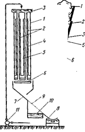 Примером практического применения системы мокрых воздухоохладителей могут служить воздухоохладители спрейдечного[†] типа. Они были использованы на ряде мясокомбинатов, построенных в начале тридцатых годов. Мокрые воздухоохладители спрейдечного типа размещают под потолком камеры (рис. 8); воздух в камеру поступает через щель, образованную ложным потолком и стеной камеры. При этом скорость его движения несколько повышается, т. е. усиливается его самоциркуляция. Однако опыт работы выявил существенные недостатки применения мокрых воздухоохладителей этого типа. Например: на поверхности мяса не получается хорошей корочки подсыхания в виду повышенной влажности воздуха, особенно в первые часы после загрузки камеры; увлажняются строительные конструкции; капельки рассола уносятся потоком воздуха в камеру и оседают на поверхности мяса; скоростьдвижения воздуха в рабочем объеме камеры недостаточна и неравномерна, что удлиняет продолжительность охлаждения; расположение воздухоохладителя под потолком увеличивает высоту камеры на 1,3—1,6 м, что удорожает строительство. Кроме того, проектная скорость движения воздуха должна была обеспечивать циркуляцию воздуха до 150 объемов в час, фактически она составила 25 — 35. Скорость движения воздуха в загруженной камере составляла от 0,106 до 0,27 м/сек.