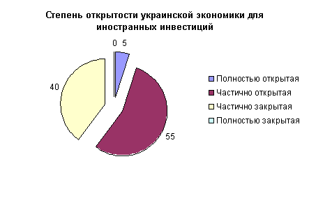 В целом аналитики высоко оценивают степень открытости украинской экономики для иностранных инвестиций. Однако и те, кто признаёт открытость экономики Украины для иностранных инвесторов, заявили о том, что ситуация, тем не менее, нуждается в дальнейшем улучшении. В качестве негативных факторов "оптимистами" отмечены "трудности с трансграничным движением капитала", "отсутствие двусторонних котировок гривны", "недостаточная правовая база", "психологические неприятие иностранцев" Оценка монополизации