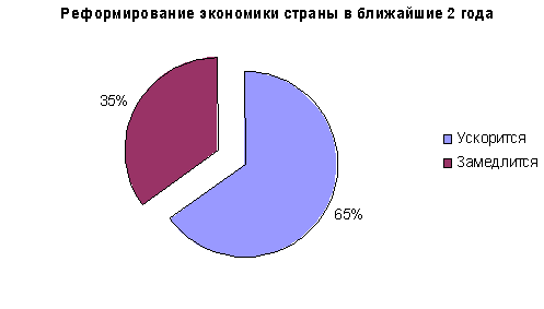 Абсолютное большинство экспертов ожидает ускорения реформирования экономики в ближайшие 2 года. Следует отметить, что в этом прогнозе некоторые эксперты опираются не на существующие планы реформирования, а на необходимость самих реформ. Некоторые аналитики сочли нужным отметить, что ускорение реформирования неизбежно, потому что "временной ресурс бездействия уже исчерпан". Однако, по мнению экспертов, темпы реформирования и само содержание реформ "будут зависеть от правительства". Таким образом, прогноз об ускорении реформирования украинской экономики во многом выглядит как пожелание. Авторы исследования - Олег Сапожников, Фонд содействия "Свободная Европа", Управляющий директор - Алексей Богатырёв, United Communications, Управляющий |