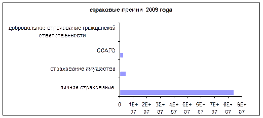 Рисунок 7 - Страховые премии по страхования имущества юридических лиц в 2009 году Таблица 1 - Страховые премии 2008 - 2009 годов