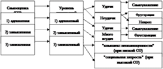 Рис. 6. Структура сознания Значение – содержание общественного сознания, усваиваемое человеком (предметные, вербальные, житейские, научные знания). В значениях обобщается, кристаллизуется и сохраняется опыт человечества. Смысл – субъективное понимание и отношение к ситуации, информации, отражает субъективную значимость событий, явлений, действий, «пристрастность человеческого сознания». Многие проблемы в жизни связаны с различием между личностным смыслом и значением; трудности взаимоотношения и общения объясняются несовпадением личностных смыслов, все это в целом определяет сложную и в то же время удивительную реальность, которая и есть человеческое сознание. 2.3. Самосознание как эпицентр сознанияСамосознание – высшее выражение сознания человека, проявляющееся в осознании и переживании системы его представлений о самом себе, присущих ему социальных отношений, потребностях, мотивах деятельности, поведении, которое активно развивается в рамках «Я-концепции». Самосознание – осознание собственного «Я», является венцом развития сознания. Способность к рефлексии определяет возможность человека наблюдать за самим собой, за своими ощущениями и состояниями, познавать свой внутренний мир, переживать его и определенным образом относиться к себе. Человек может критически оценивать себя и свое состояние через определенную систему координат, коими являются его ценности и идеалы. Также мерилом для человека и его отношения к себе являются другие люди. Каждый социальный контакт обогащает наше представление о себе, делает его более многогранным. Сознательное поведение – это не столько проявление того, каков человек на самом деле, сколько результат представлений человека о себе, сложившихся на основе общения с ним окружающих. Критерии самосознания: 1. выделение себя из среды, сознание себя как субъекта, автономного от среды; 2. осознание своей активности – «Я управляю собой»; 3. осознание себя «через другого»; 4. моральная оценка себя, наличие рефлексии. Главная функция самосознания – формирование себя как личности, самоактуализация при непрерывном развитии своих способностей и реализации своих возможностей полностью в каждый данный момент. Это предполагает внутреннюю целостность, постоянство личности, независимость от меняющихся ситуаций, решительность, ответственность. 2.4. СамооценкаСамосознание человека как система его взглядов строго индивидуально. Люди по-разному оценивают свои поступки, происходящие события, объекты реального мира. При чем оценки одних людей достаточно объективны, соответствуют реальности, а оценки других крайне субъективны. От чего зависит адекватность нашего сознания и самосознания? Первопричиной большинства факторов, определяющих возможность построения адекватной «Я-концепции», является степень критичности человека, складываемой из способности критически оценивать информацию и умения формировать и контролировать поведение, деятельность, определяемой поставленной целью и программой действий. Степень адекватности «Я-образа» выясняется при изучении самооценки человека. Самооценка – оценка личностью самой себя, определение уровня собственной значимости, своих возможностей, качеств и места среди других людей. С помощью самооценки происходит регуляция поведения и деятельности лич