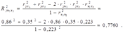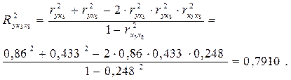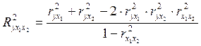 Из (27) следует, что при независимости факторов друг от друга, т.е. Пользуясь формулой (27), можно вычислить три возможных двухфакторных коэффициента детерминации: