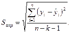 Числитель подкоренного выражения – это остаточная, не объясненная моделью сумма квадратов отклонений результативного признака, а знаменатель – число степеней свободы остаточной вариации. В нашем примере остаточная сумма квадратов отклонений равна 814,3. Имеем: