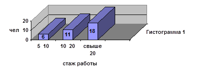 Анализ рис 2.6 и 2.7 показал, что за исследуемый период с 2000 по 2001 гг.. произошло «омоложение» персонала организации. Так, например, численность работников в возрасте 40-50 лет снизилась с 11% в 2000 г. до 6 % в 2000 г., в то время как численность работников в возрасте до 40 лет имеет тенденцию к росту с 85% в 2000 г. до 90 % в 2000 г. Информация полученная в процессе исследования позволяет утверждать, что «омоложение» персонала Управления образования происходит, в первую очередь, потому, после проведения сокращения штатов, оставляют молодые перспективные кадры, которые легко обучаемы, легче восприимчивы к изменениям специфики работ, более подготовлены к нововведениям. А, во-вторых, это происходит потому, что в организации у службы управления персоналом сформировано мнение, что эффективнее использовать молодые кадры, выявить их проблемы, мотивировать их на повышение продуктивности труда, заинтересовать и увлечь работой, чем заниматься переквалификацией работников предпенсионного возраста. Распределение работников Управления образования администрации города по количеству лет стажа по специальности: Рис. 2.8 Динамика численности персонала Управления по количеству лет стажа по специальности