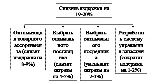 Выручка от продаж – 368 Себестоимость продаж – 194 Прибыль от продаж – 105 Чистая прибыль – 98 Для оценки стратегии рассчитаем несколько показателей эффективности: 1.рентабельность продукции Рпр = (цена - полная себестоимость)/ полную себестоимость Рпр = (368-194)/194*100=89,7% 2. рентабельность активов Рак = прибыль/баланс Рак = 98/464*100=21,1% 3. коэффициент текущей ликвидности Ктл = оборотные активы/краткосрочные обязательства Ктл = 24/80=0,3 4.коэффициент обеспеченности собственными средствами К = (оборотные активы – краткосрочные обязательства)/оборотные активы К = (24-80)/24 = -2,3 5. коэффициент автономии Кeq = капиталы и резервы/баланс Кeq = 279/464=0,6 Рентабельность продукта и активов и коэффициент автономии у стратегии №2 выше, чем у стратегии №1. Следовательно, предпочтительнее выбрать стратегию №2. 2.4. Предлагаемый стратегический план Для рассматриваемого предприятия предпочтительнее стратегия №2, как по результатам сравнения, так и по характеристики отрасли, в которой находится организация. Стратегия ограниченного роста характерна для предприятий из сложившихся отраслей и со сложившейся технологией. Для рассматриваемого предприятия путь достижения этой стратеги можно определить через сокращения издержек. Предлагается следующий план сокращения издержек: 1. Снижение издержек – минимизация затрат на производство, хранение и транспортировку продукции; 1.1. Оптимизация номенклатуры продукции – анализ производимых товаров и выбор конкурентоспособных; 1.2. Анализ поставщиков и выбор наилучшего по приоритетам цена и качество; 1.3. Анализ посредников и выбор наилучшего по приоритетам надежность доставки и минимальные задержки в пути; 1.4. Проанализировать потребность в запасах и рассчитать оптимальный размер запаса. Стратегический план подразумевает свою постепенную реализацию в течении трех лет. Затраты на закупку за год = 4050000 руб., в структуре затрат-51,7%; Затраты на транспортировку за год = 162000 руб., в затратах-2,1%; Затраты на производство за год = 3617946 руб., в затратах-46,2%; Выручка от продаж за год = 9000000 руб.; Объем произведенной продукции за год = 14417 шт.; Среднегодовая цена изделия = 624,26 руб.; Среднегодовая себестоимость изделия = 543,11 руб. Таблица 21. Этапы реализации стратегии.