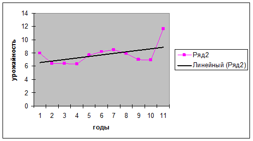 Рассчитаем урожайность для последних трех лет динамического ряда, т.е. сделаем ретроспективный прогноз:
