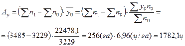Абсолютный прирост валового сбора за счет размера посевной площади определяется так: