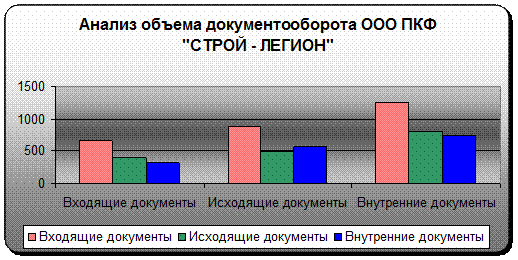 Диаграмма представленная на рисунке 7 наглядно показывает объем документооборота в ООО ПКФ «СТРОЙ - ЛЕГИОН», который увеличился в течение трех лет.