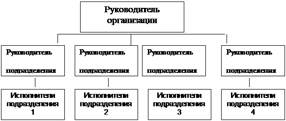 Макс Вебер сформулировал представление об организации, которое стало традиционным для ученых, исследующих общественные отношения, но которое в меньшей степени поддерживается специалистами, рассматривающими все с точки зрения управления организацией. Вебер считал, что бюрократическая форма организации является наиболее эффективной в современном ему обществе. Он хотел создать основы идеальной организации, которая обеспечила бы максимум разумности поведения человека. Это его представление явно отличается от принятого понимания термина “бюрократическая организация”, употребляемого нередко для обозначения больших и громоздких правительственных учреждений или частных предприятий, которые, как правило, в своей деятельности не учитывают индивидуальные запросы людей. Говоря о технических преимуществах бюрократической системы, Вебер писал: “Решающее преимущество бюрократической организации перед любым другим видом организации состоит в том, что она всегда обладает чисто техническим превосходством. Совершенный механизм бюрократической организации по сравнению со всеми другими видами организации дает такие же преимущества, как и машина по сравнению с немеханизированными способами производства. Точность, скорость, отсутствие неопределенности, четкое делопроизводство, непрерывность, благоразумие, единство, строгая субординация, уменьшение трений между членами организаций и сокращение затрат труда и материалов- все это доведено до совершенства в чисто бюрократической организации, и особенно в той форме, где строго проводится единоначалие”. По мнению Вебера, другим преимуществом бюрократической организации является ее универсальность. Он считал, что такая организационная форма способствует увеличению эффективности самых разнообразных организаций- как промышленных предприятий, так и правительственных учреждений, воинских подразделений и профессиональных объединений. По Веберу, основными чертами “идеальной” бюрократической организации являются: 1) разделение труда на основе функциональной специализации; 2) четкая иерархия власти; 3) система правил, определяющих права и обязанности каждого члена организации; 4) система процедур, определяющих порядок действия во всех ситуациях, встречающихся в процессе функционирования организации; 5) игнорирование личных качеств во взаимоотношениях между сотрудниками организации; 6) отбор и выдвижение работников по их квалификации. Он укрепил модель своего бюрократического механизма с помощью введения особой установленной власти общества, т.е. какой-то силы, которая узаконена обществом и “заставляет человека иногда делать то, что он не хочет делать”. В зависимости от характера связей между различными подразделениями различают следующие формы организационных структур управления. 2.1. Линейные структуры Линейная организационная структура основывается на принципе единства распределения поручений, согласно которому право отдавать распоряжения имеет только вышестоящая инстанция. Соблюдение этого принципа должно обеспечивать единство управления. Такая организационная структура образуется в результате построения аппарата управления из взаимоподчинённых органов в виде иерархической лестницы, т.е. каждый подчинённый имеет одного руководителя, а руководител