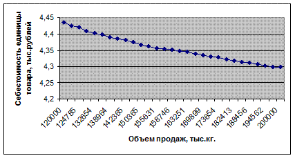 Рисунок 3.7– Зависимость себестоимости единицы товара от объема его продаж