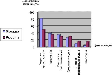 Вывод: Люди выезжают из страны в основном с целью отдыха. Диаграмма 3 - Самые посещаемые страны. Выезжающие, Россия, Москва: