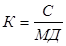 Для принятия перспективных решений этот показатель является очень полезным. В нашем примере в отчетном году АО ИП «Эфес Караганда Пивоваренный завод» организовал пива сорта «Карагандинское» в количестве 1045 тыс. по цене 220 тенге за 1 дал. Переменные затраты на единицу продукции составили 163,64 тенге, а на всю реализовали ми продукцию - 171004 тыс. тенге. Маржинальный доход был получен в размере 58896 тыс. тенге (220 х 1045 - 163,64 х 104 =229900-171004). Подставляя в приведенные формулы цифровые значении соответствующих показателей, получим относительную величину маржинального дохода: а) МД в% к ДРП = б) МД в% к P = При постоянных значениях маржинального дохода и цены реализации их соотношение также будет постоянным, что подтверждает соответствие этих расчетов с уровнем минимального маржинального дохода в процентах к доходу от реализации продукции в точке безубыточности. Постоянные затраты представляют собой постоянную совокупную величину, а издержки на единицу продукцию изменяются в зависимости от уровня производства. В результате доход на единицу продукции также изменяется в зависимости от объема производства. Так, в предыдущем примере постоянные издержки на единицу продукции составляет в точке безубыточности 56,36 тенге, а при ожидаемом объеме реализации, который больше критического объема продаж на 518,79 тыс. дал (1200-681,21), их удельная величина будет равна 45,05 тенге. Таким образом, постоянные издержки на единицу продукции снизятся на 11,31 тенге, в результате доход от основной деятельности на единицу продукции увеличится. Если в точке безубыточности, доход от основной деятельности на единицу продукции был равен нулю, то при ожидаемом объеме реализации его уровень составил бы 45,05 тенге (формула 8).
