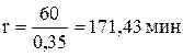 Ритм заполнения контейнера r, мин, определяется по формуле: