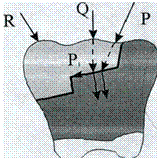 1 и 2 - правильное; 3 - неправильное оформление полости. R, Q, Р - направление сил.